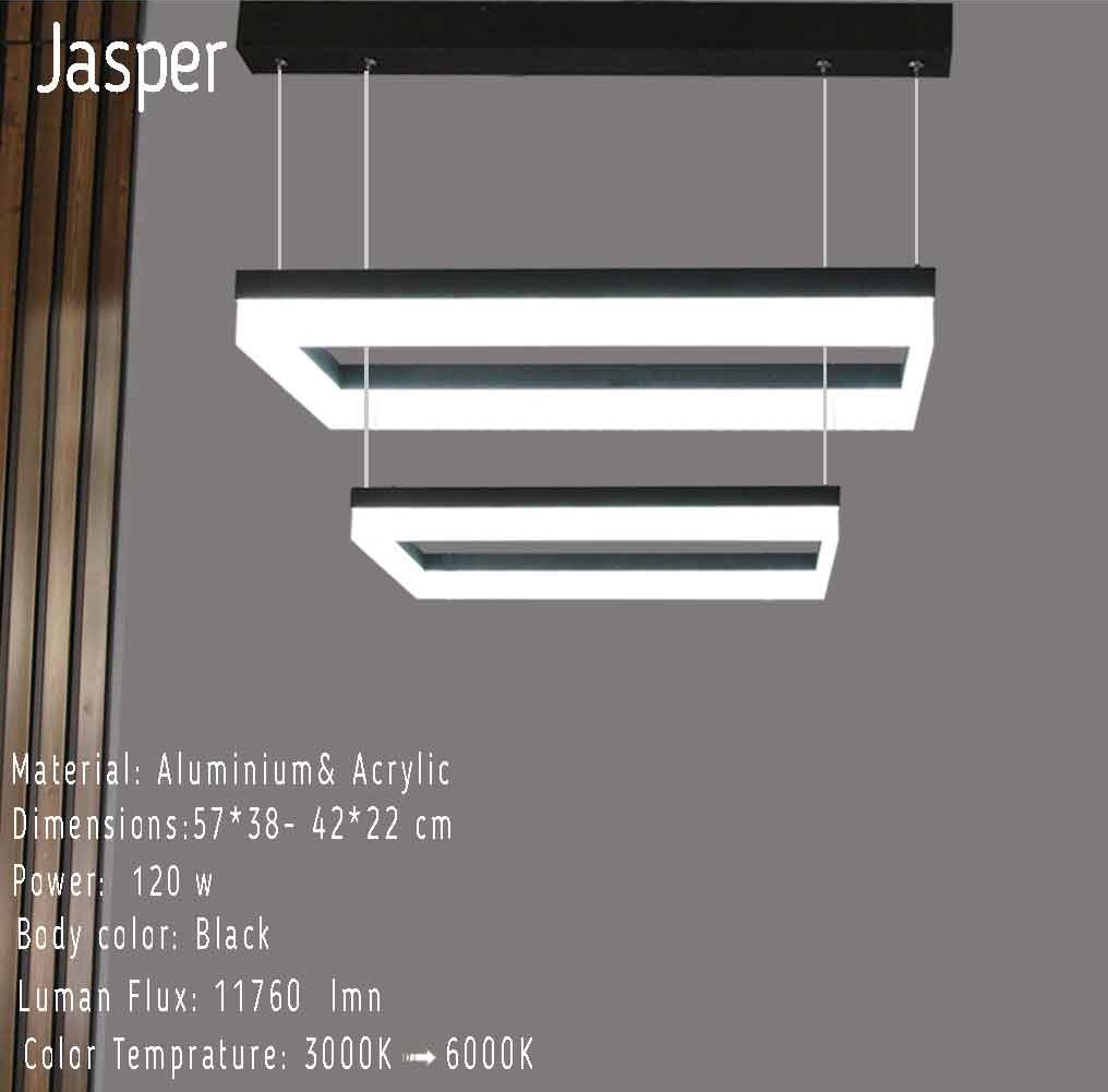 لوستر آویز دو طبقه جاسپر سیلانور یک آویز مدرن و شیک با نور LED، قابلیت دیمیبل، ریموت کنترل و تغییر رنگ نور است. کیفیت ساخت عالی، طراحی لوکس و نوردهی یکنواخت آن را مناسب پذیرایی، آشپزخانه و فضاهای امروزی کرده است.