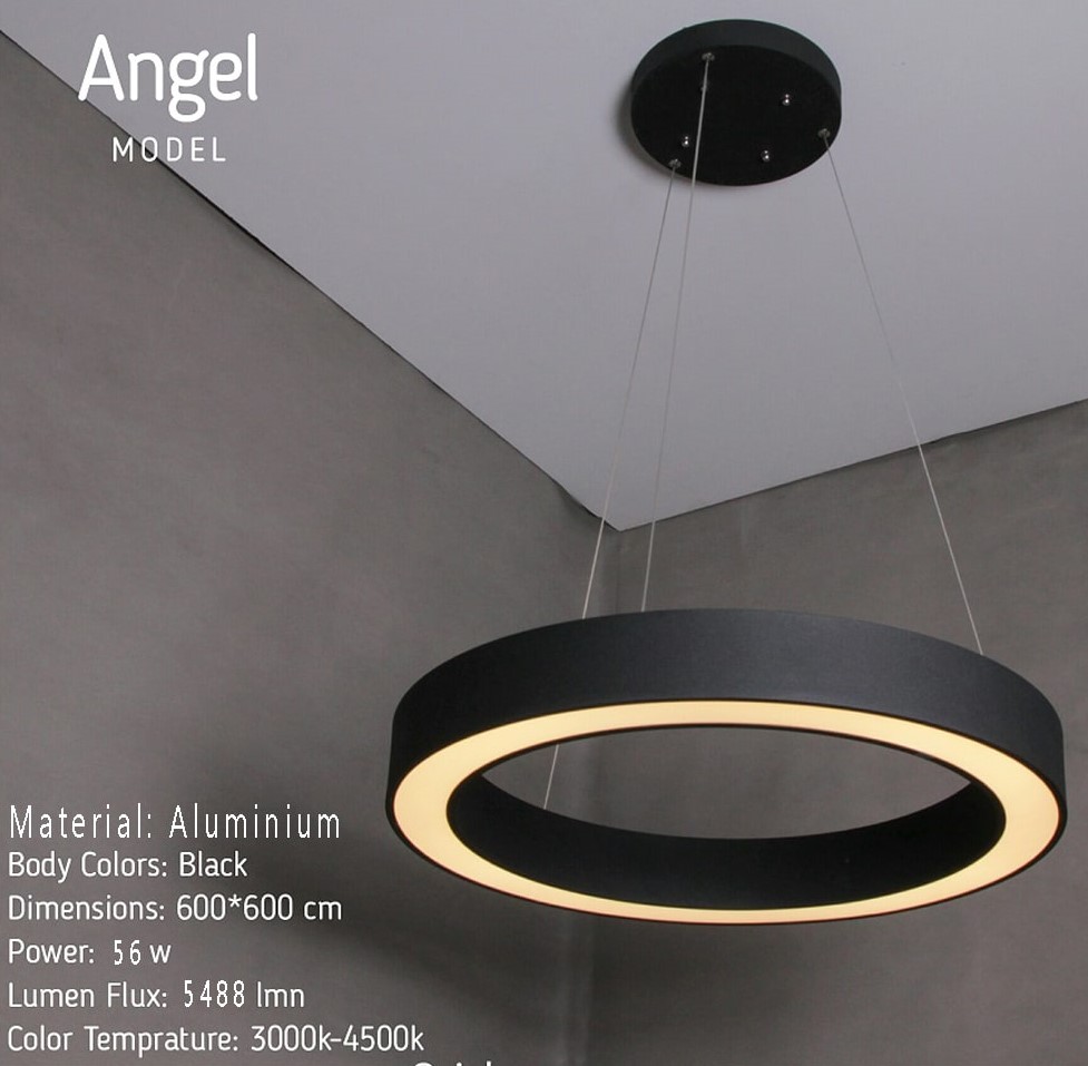 لوستر آویز آنجل 60 سانت سیلانور یک آویز مدرن با طراحی حلقه‌ای، نور LED کم‌مصرف و تنظیم ارتفاع است که برای پذیرایی، آشپزخانه و اتاق‌ها انتخابی شیک و کاربردی محسوب می‌شود. ترکیبی از زیبایی، ماندگاری و نورپردازی یکنواخت.